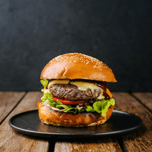 Grilled steak with American cheese, mayo, lettuce, tomatoes & red onions