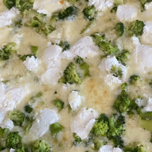 Mozzarella, green peppers, mushrooms, onions, broccoli & side sauce
