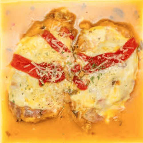 Chicken or veal sautéed in egg batter, topped with prosciutto, roasted peppers & melted mozzarella cheese, simmered in a white wine sauce