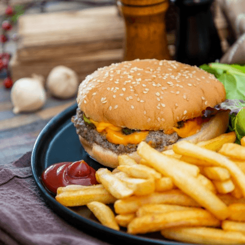 Grilled chicken tossed with hot sauce American cheese, bleu cheese, lettuce & tomatoes